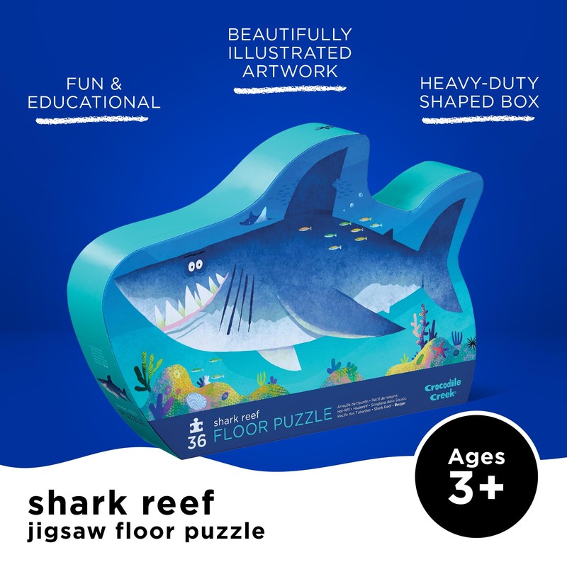 Crocodile Creek 36-Piece Jigsaw Floor Puzzle - Fun Floor Puzzles for Kids Ages 3-5 - Heavy-Duty Shaped Box for Storage - Shark Reef - 24" W x 18" H Finished