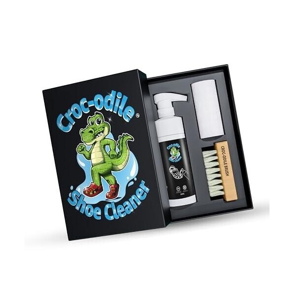 - FAMILY-RUN BUSINESS – Our Crocodile Shoe Cleaning Kit, is one of our latest shoe cleaning innovations, developed in Texas USA by our small family-owned company. Created in 2024, this specialty formula is revolutionizing shoe care. Say goodbye to stains, dirt, and grime as our gentle yet effective foaming cleaner set helps restore your footwear to its original, pristine condition.