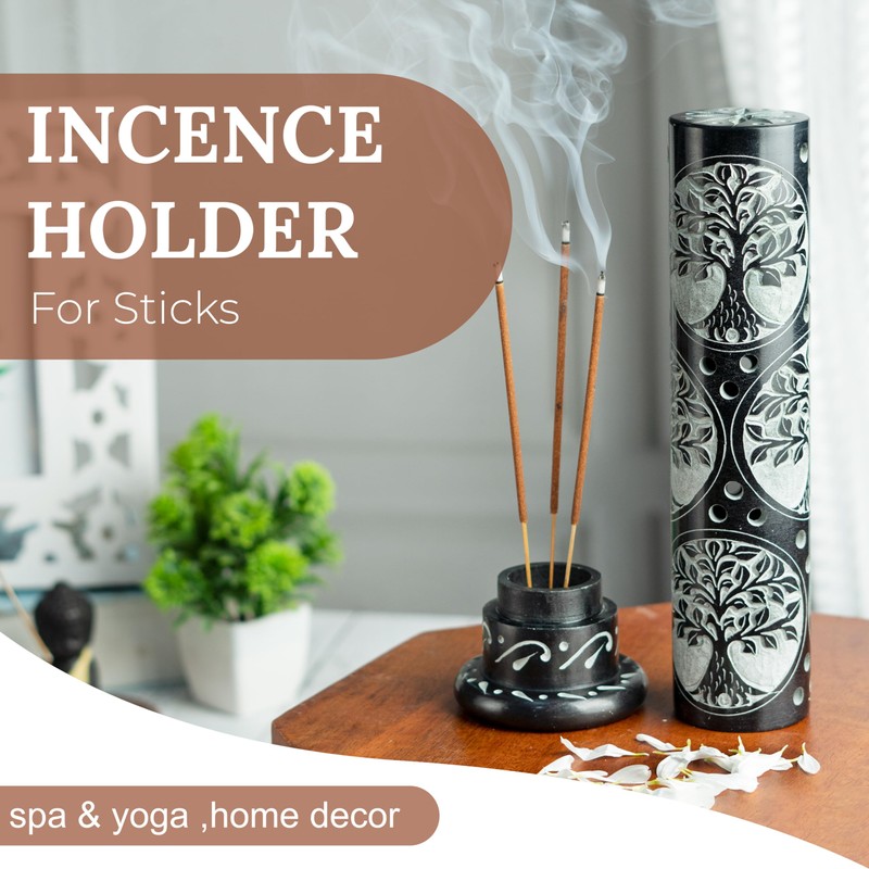 - ✨ MARBLE SOAPSTONE INCENSE BURNER : This attractive handmade black marble soapstone incense stick burner round shape tree of life symbol design tower burner marble soapstone incense and candle holder handmade in INDIA, incense and spirituality. Size of the burner in Inch length -3 Width -3 Height -10 Inch, lxwxh (7.5x7.5x28)cm. Incense can be burned during times of healing, yoga, prayer, general reflection or to help cleanse and clear the air and make a space sacred.