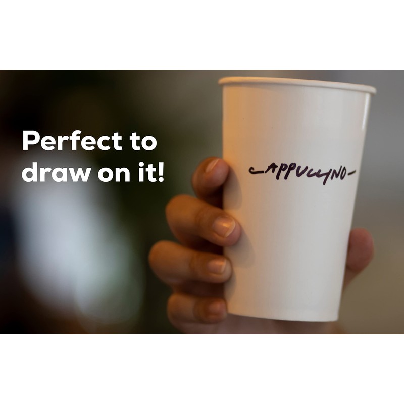 Our ultra sturdy disposable paper cups are designed for single-use, and they are a great earth-friendly alternative to plastic or styrofoam drinkware. Our cups are designed for fast food service, restaurant use, or for delivery and takeout orders, office use, and for serving up your favorite beverage at home. These durable paper cups are an economic option for coffee shops, diners, restaurants, party supply stores, and food service businesses who demand reliability and portability from their drinkware. Designed to fit almost all standard 16 ounce cup lids (3.5 Inches), each cup features a rolled rim for rigidity and strength and is made using ultra thick and durable cardboard that has been coated with polyethylene to prevent the cups from leaking or getting soggy. This means that our paper cups can hold beverages up to 210 degrees Fahrenheit. Ideal for both hot and cold beverages, our paper cups are great for serving hot or iced coffee drinks, chai lattes, frozen lemonade, boba or bubble teas, fruit smoothies, wine, soda fountain drinks, root beer floats, ice cream, milkshakes, and more.