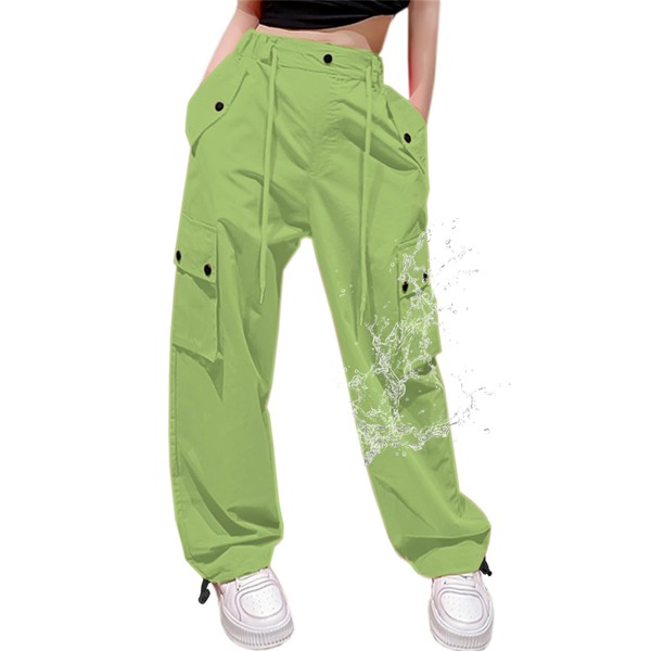 Cromoncent Womens High Waist Parachute Pants Y2K Cargo Trousers with Pockets, Green, 2XL