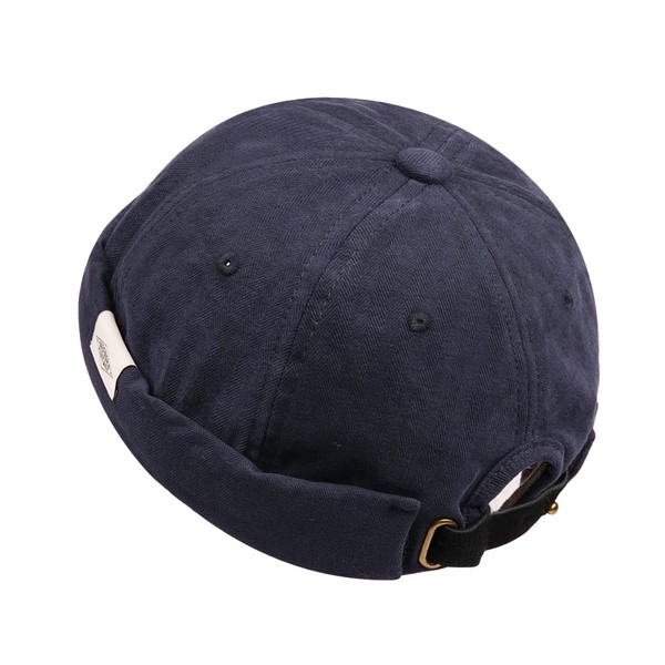 - About Design: Brimless fashion is a simple and unique fashionable la hat,retro rolled cuff design, no visor crown with 6 panels, clear texture, which gives it a unique design. That's why the work cap is also called a rolled-edge cap. Simple but unique cloth tag on the side. The strapback buckle can be worn facing forward, backwards or to the side as you please. 6 embroidered air holes to enhance air permeability.