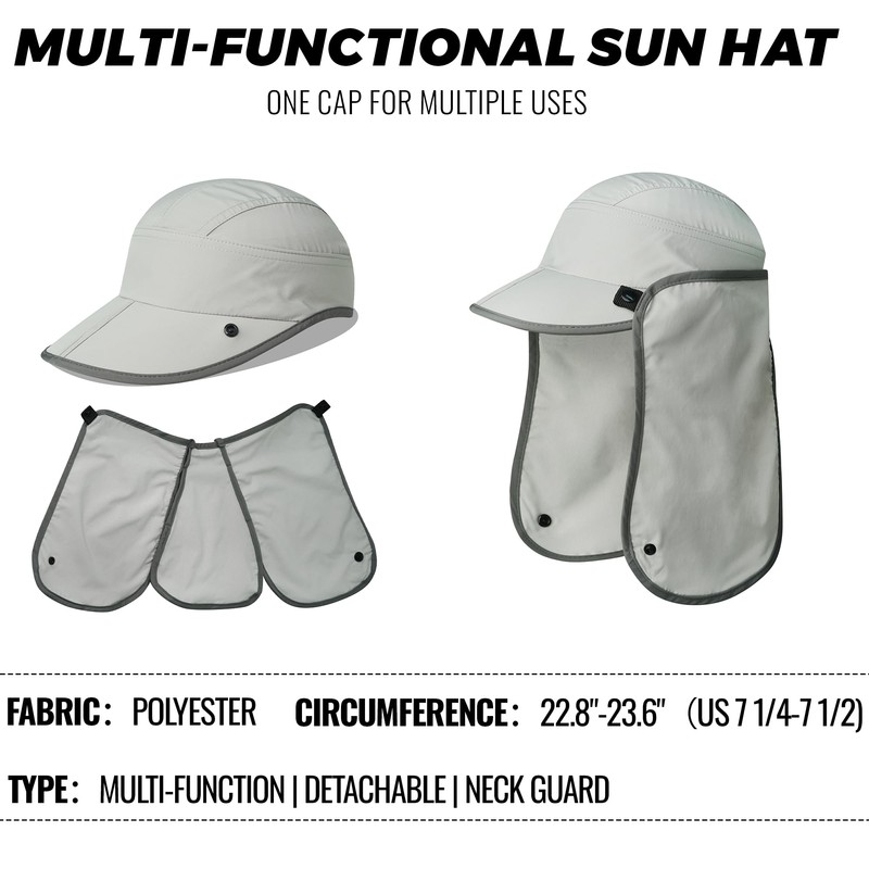 - Removable Neck Flap for Full Sun Protection:The neck flap baseball sun cap design shields your face, ears and neck from harmful UV rays. The detachable flap offers versatile sun protection when you need it
