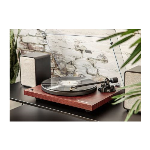 The Crosley C6B is a fully manual two-speed turntable created to give music fans a true analog experience. An audio-grade MDF plinth is wrapped in a stylish matte black veneer and since weight helps keep vibration at bay, a heavy steel platter provides a solid seat for your vinyl during play. Housed underneath the platter, a low vibration motor connected via belt spins records at both 33 1/3 and 45 RPMs - now easily switchable on the turntable plinth without requiring a belt adjustment. Dial in the tracking force to 3.0 grams with the adjustable tonearm counterweight to match the specs of the AT3600 moving magnet cartridge. The dampened cueing lever will gently drop the needle on the record to fill the room with the warm sound of vinyl. Connect speakers or your receiver to the RCA outputs on the back, or choose the easy Bluetooth option for a quick wireless connection. Use the built-in preamp (or use your own) and you’re ready to jam. The C6 is a lot of turntable for the money!