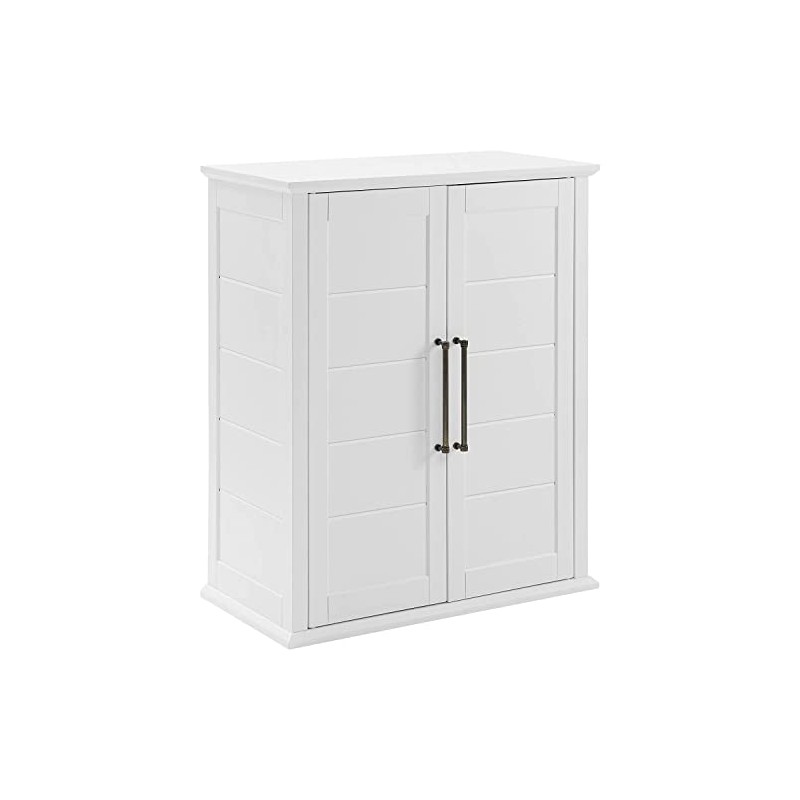 - Two adjustable and removable shelves provide ample storage for a variety of items including dishes, linens, or cleaning supplies