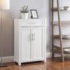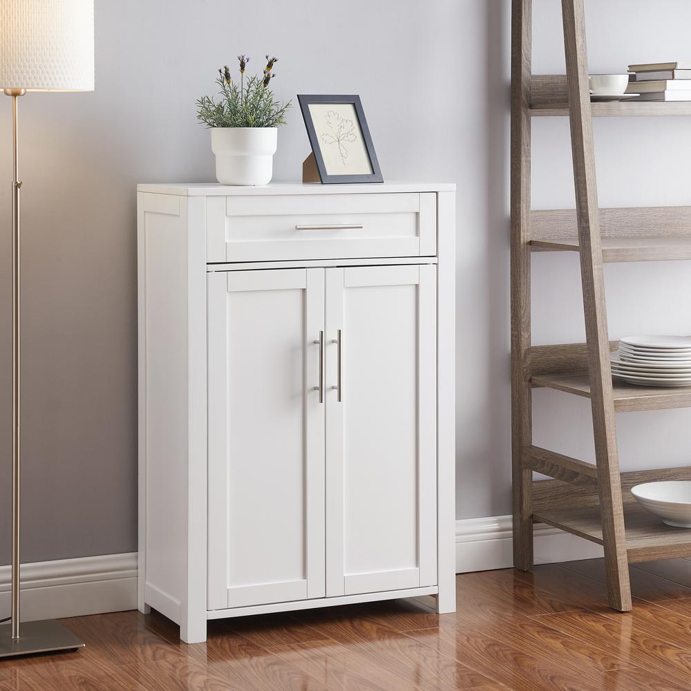 Increase storage space in your bathroom or kitchen with the Savannah Storage Cabinet. Featuring two adjustable shelves and a large storage drawer, this compact cabinet can accommodate a variety of household items. Simple and stunning, the Savannah Storage Cabinet casts a high-end silhouette with Shaker-style recessed panels. Add this cabinet to any room of the home for an organizational upgrade.