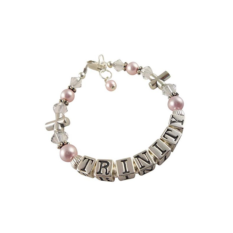 Cross Bead Sterling Silver Name Bracelet in Pink