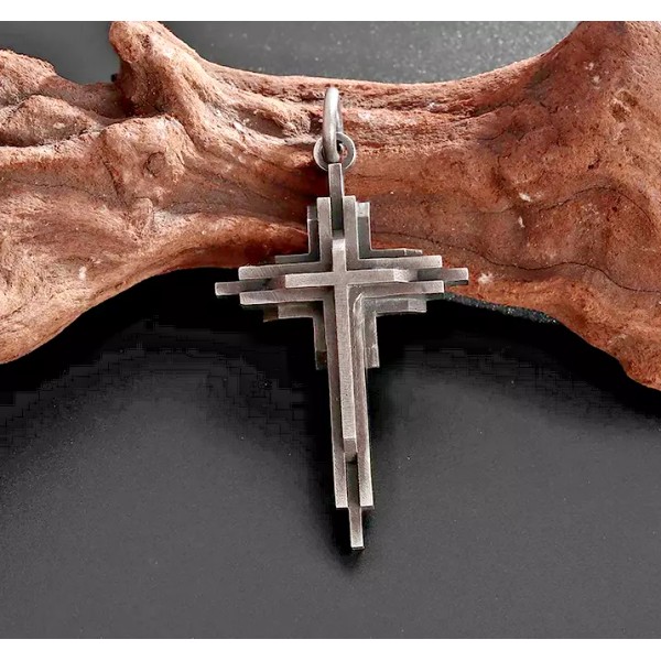 Cross Big 3D CROSS CHRISTIAN RELIGIOUS pendant ITALIAN 925 SILVER Plated 28" chain men