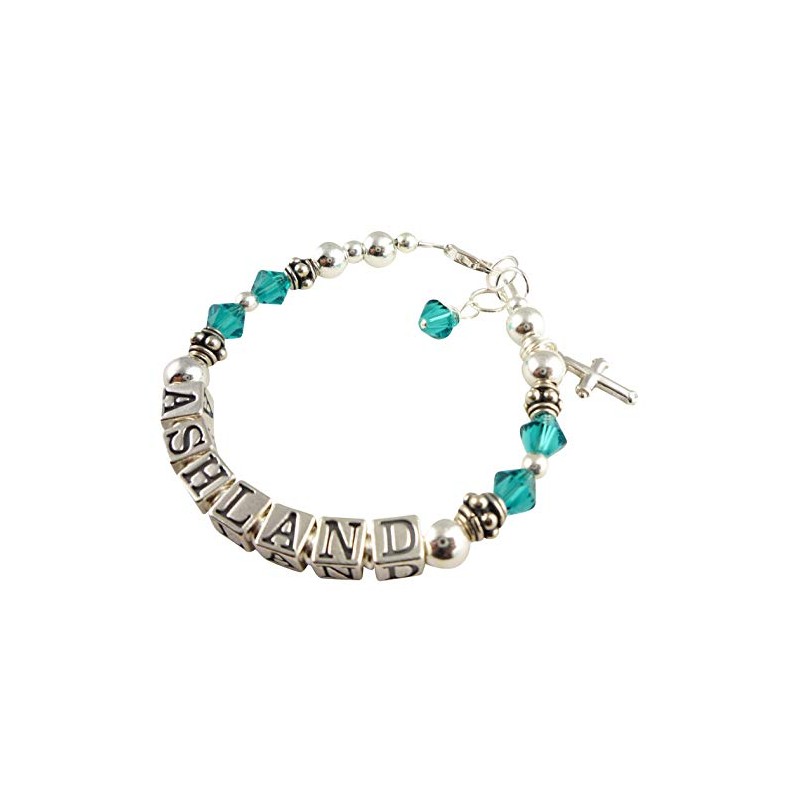 Cross Bracelet with Birth Month Blue Zircon Beads
