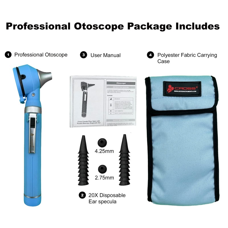 Cross Canada 11-079 Physician Fiber Optic LED Pocket Otoscope Diagnostic Set – Professional Otoscope for Physician, Medical Student, Nursing Student, Doctor, Nurse (Ceil Blue)
