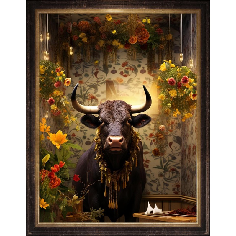 Cross Embroidery Kit 11ct 3 Pieces - Pre-Print Embroidery Canvas Needle Full Range Adults or Children Beginner Kit - Cows and Flowers 33 x 43 cm