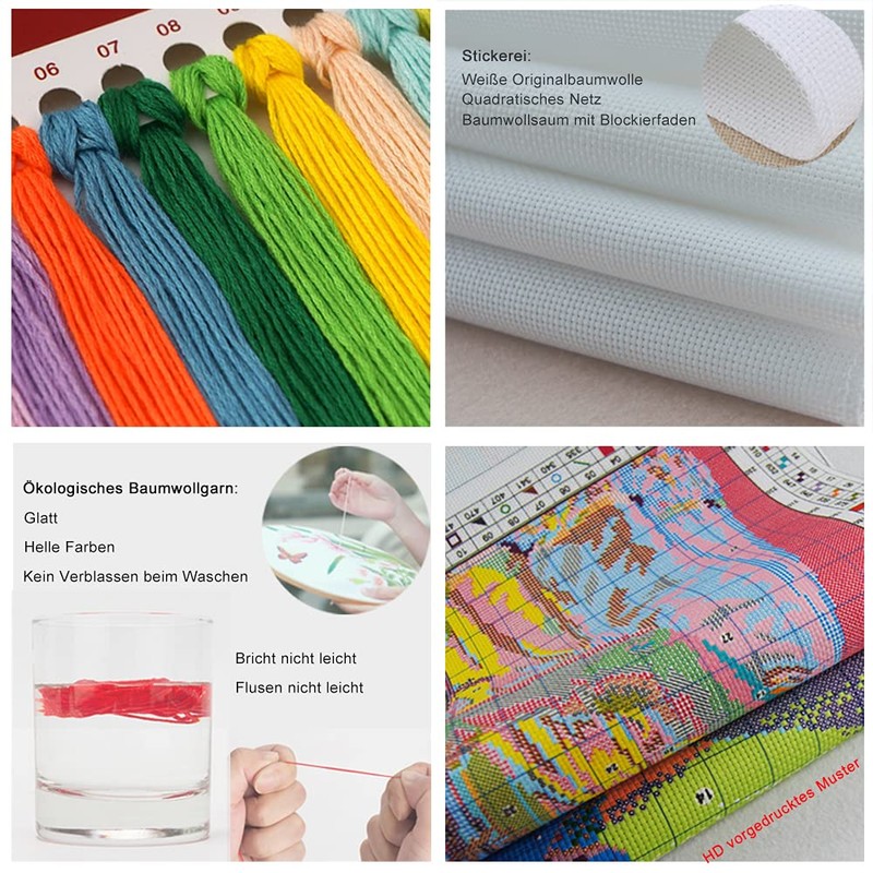 - 11CT printed fabric size: This is a 11CT printed embroidery kit with precisely pre-printed fabric. A grid design is not required. Fabric size: 33 cm x 43 cm (13 x 16.9 inches).