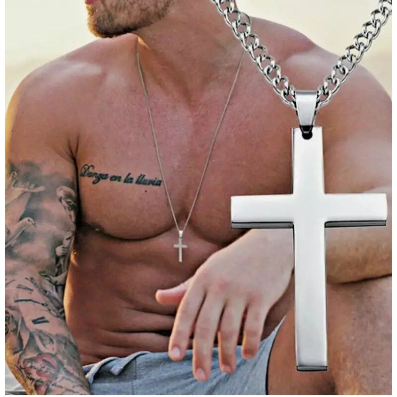 Cross LARGE CROSS CHRISTIAN FAITH PRAY pendant ITALIAN 925 SILVER Plated 22" chain men