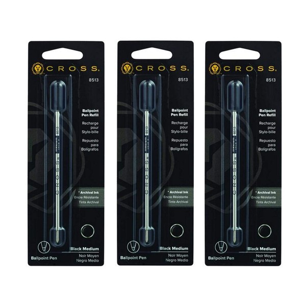 Cross Medium Ballpoint Pen Refill - Black (Pack of 3)