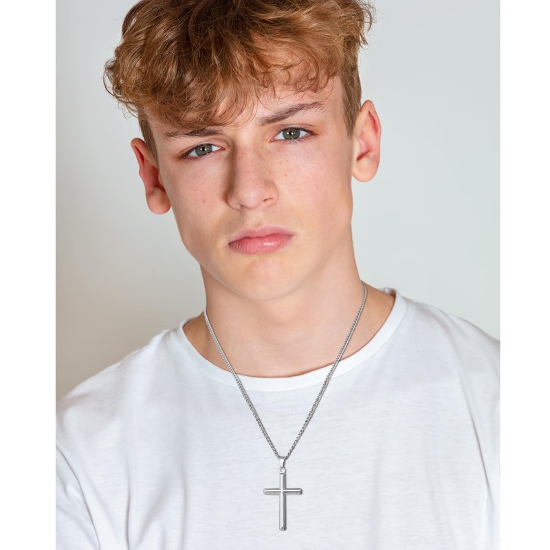 Cross Necklace for Men, Mens Silver Cross Pendant Chain Necklace, Stainless Steel Necklace Simple Jewelry Gift for Men Boys Women 24inch