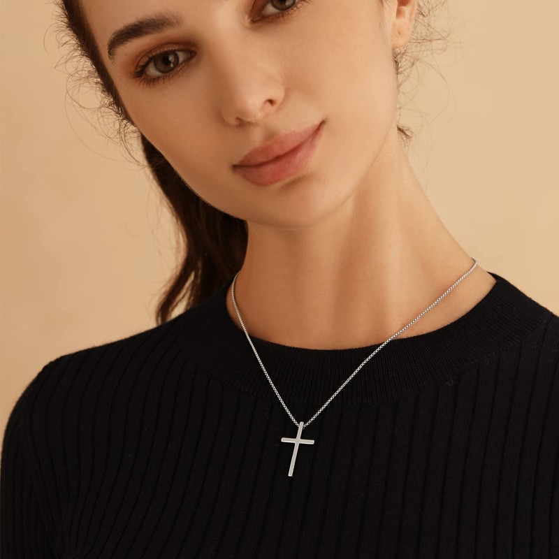 - [Cross Necklace for Women] - Classic cross necklace with box chain, you can wear it alone or layered with other necklaces. Suitable for both men and women.