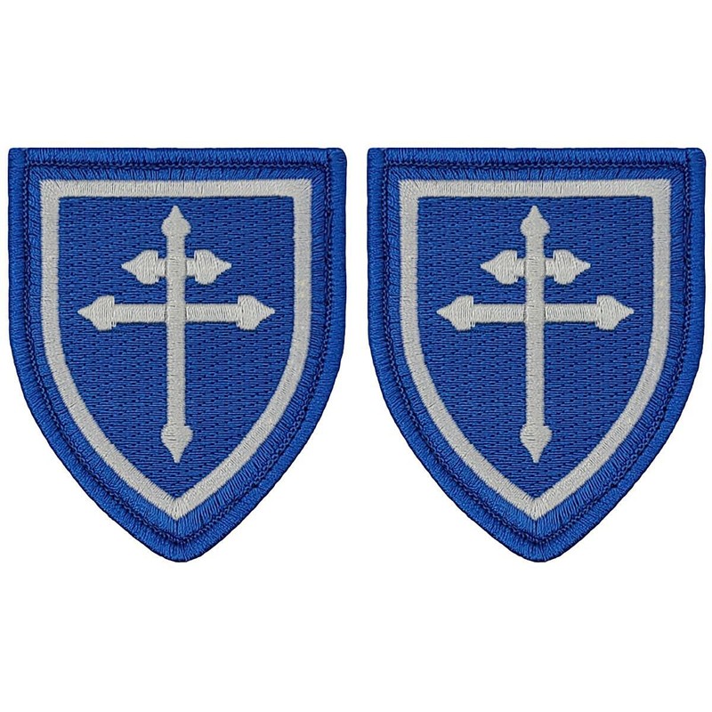 Cross of Lorraine Shield Embroidered Patch 2pc Bundle - 3 X 2.5 Inch Hook Fastener Backing C603