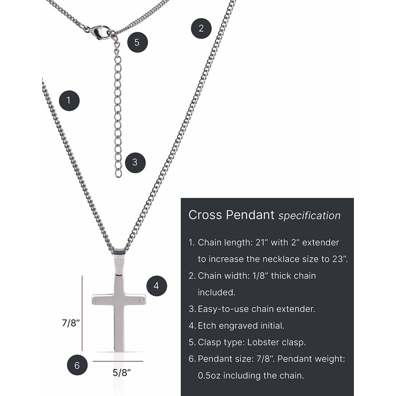 - ✅ Personalized Initial Engraving: Choose your initial letter, engraved on the right-hand side of the cross pendant. Designed to suit both men and women, this stainless steel cross pendant is a versatile accessory for any outfit.