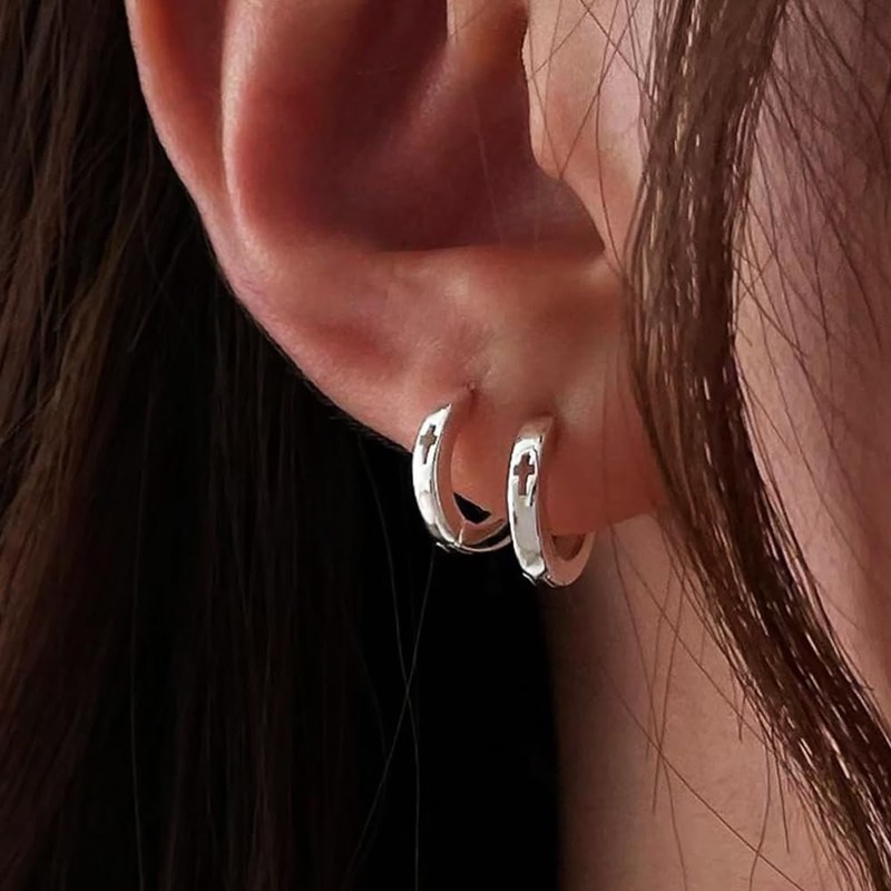Cross Silver Earrings Small Silver Earrings for Women Small Hoop Earrings Silver Hypoallergenic Earrings Small Thick Huggie Hoops Earrings