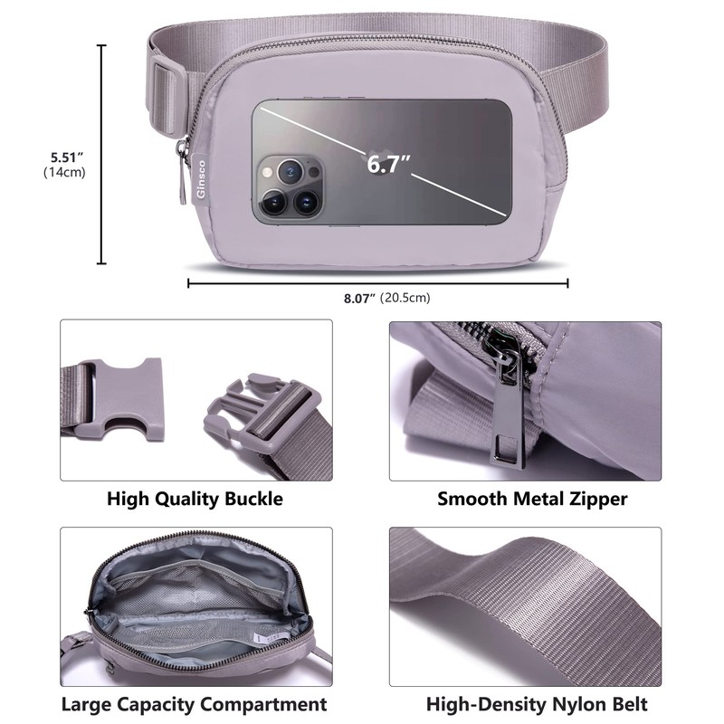 - 【HIGH QUALITY】 - Fanny pack for women, made of of high quality nylon which make it waterproof, durable and tear resistant. The waist pack is made of high quality copper teeth metal zipper, fashion and long lasting. Exquisite overall craftsmanship with cleanly finished seams. This waist bag is sturdy and built to last yet soft and pliable.