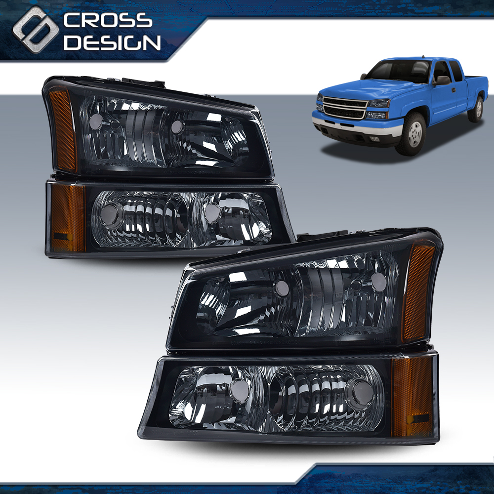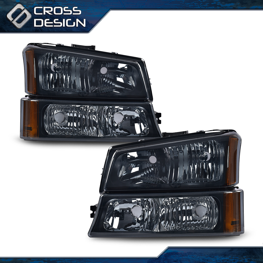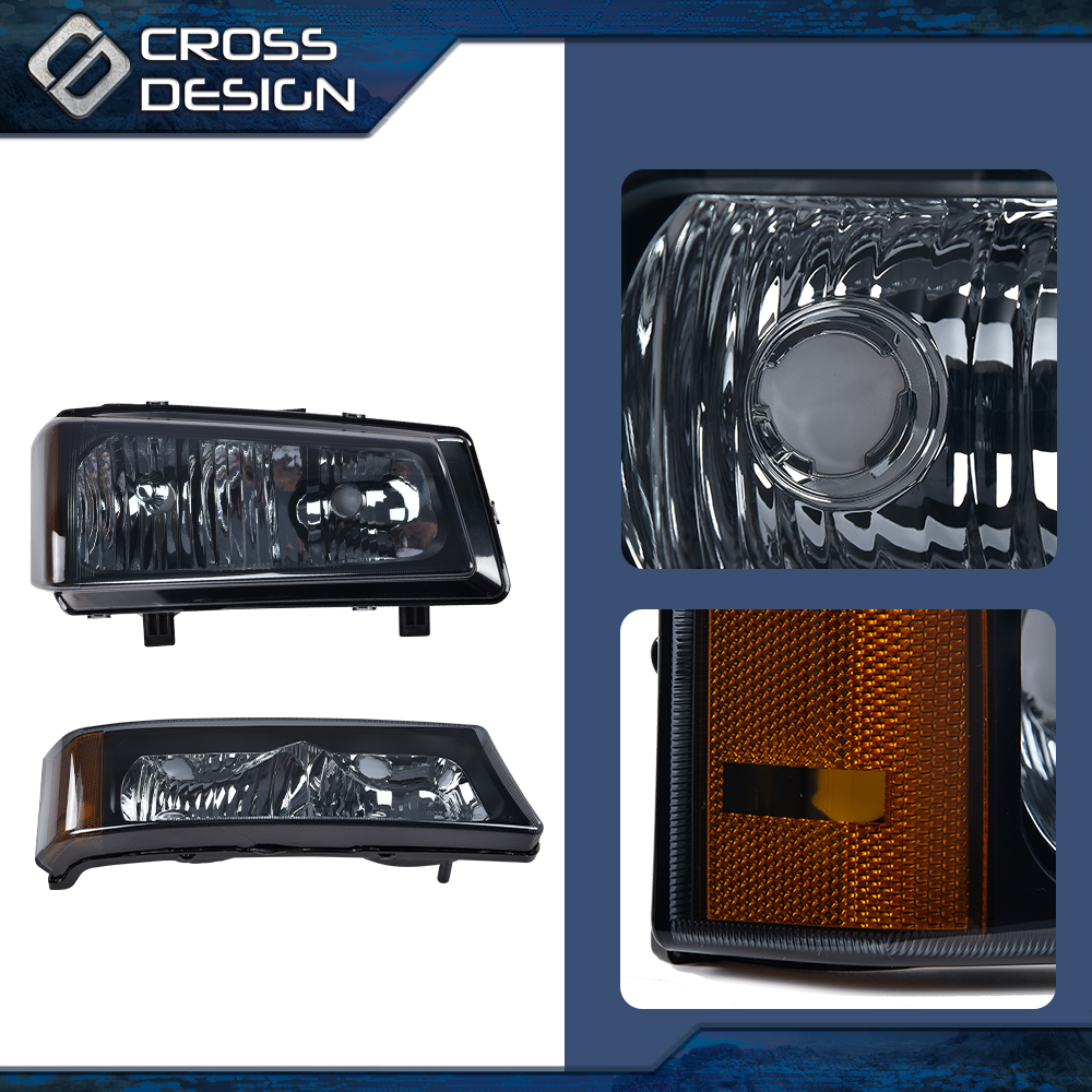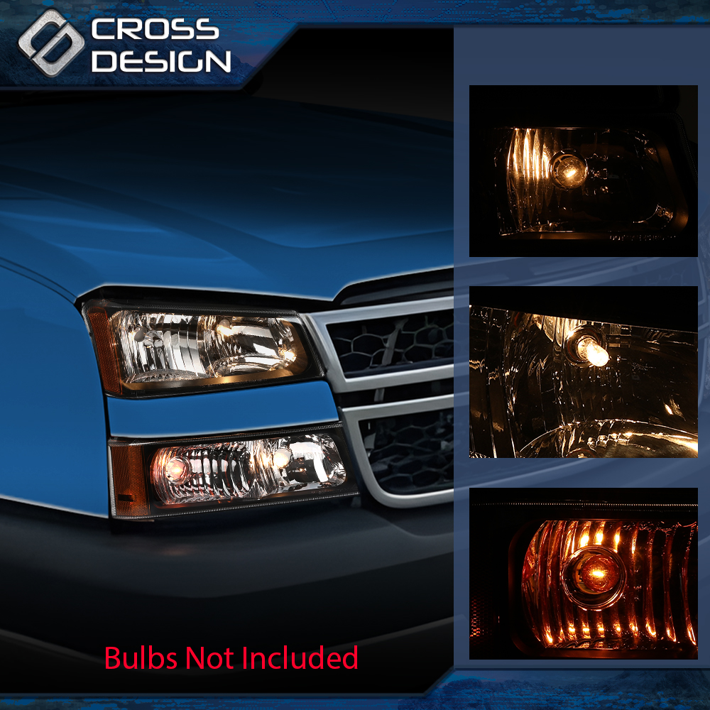 CROSSDESIGN Fit For 2003 2004 2005 2006 Chevy Silverado 1500 Avalanche Black Headlights Lamp