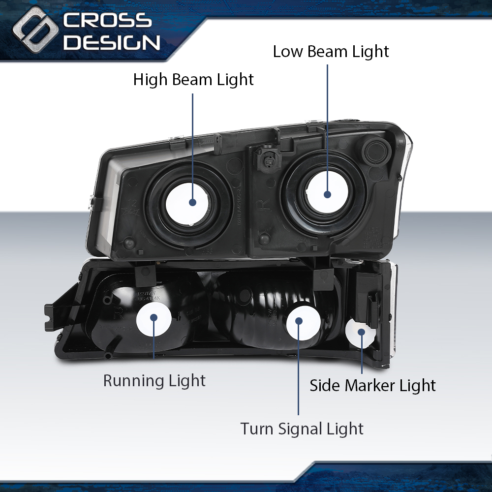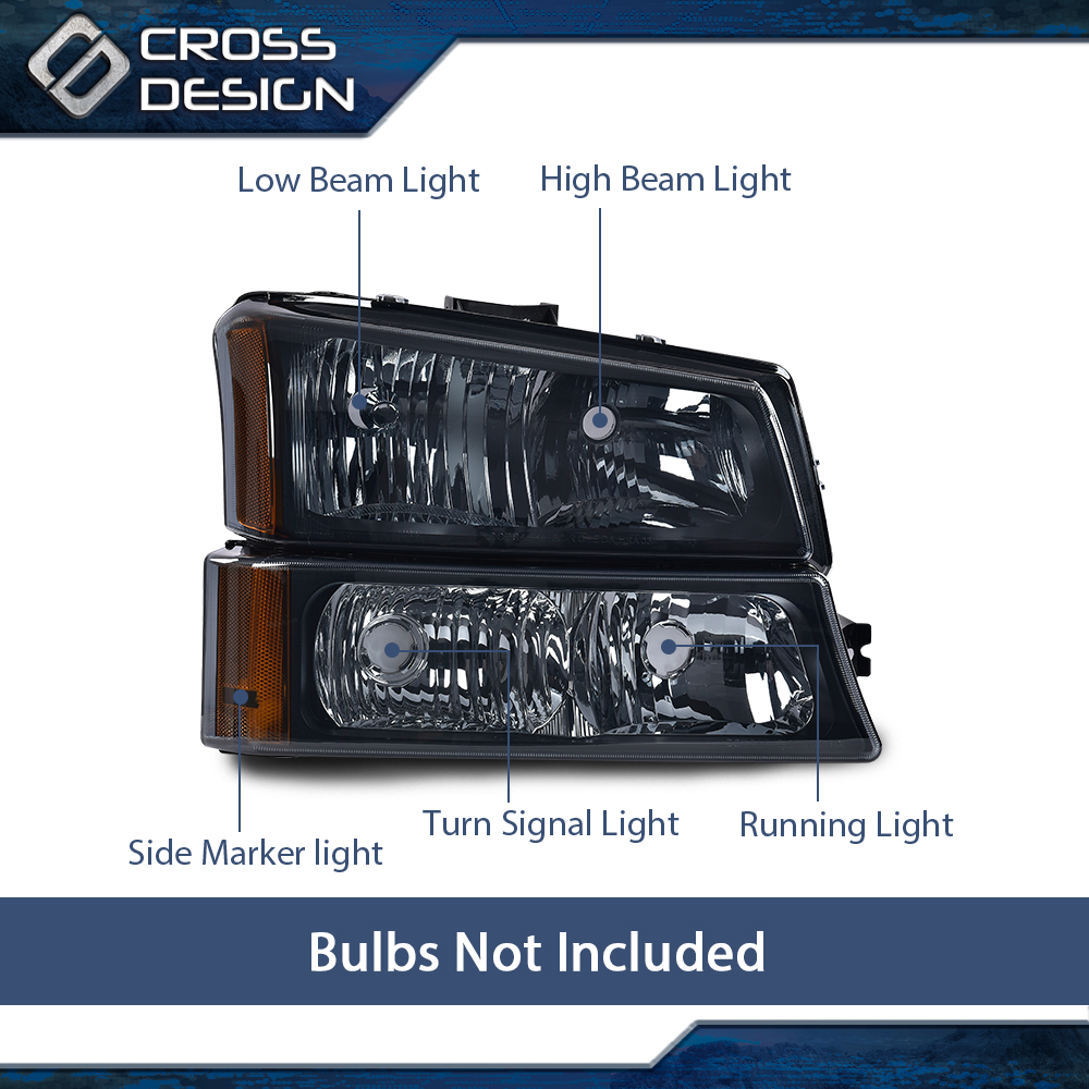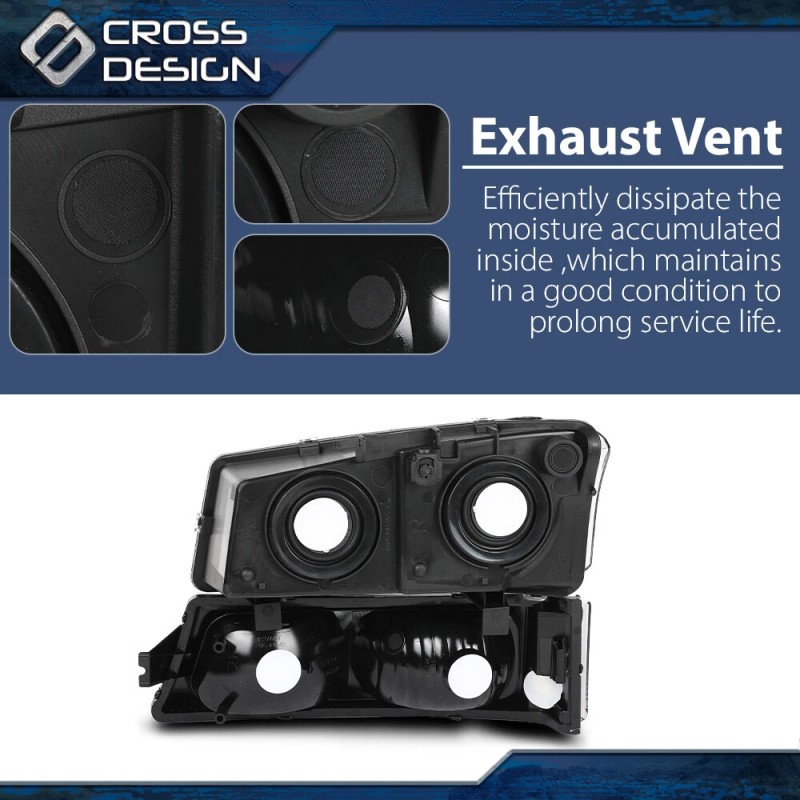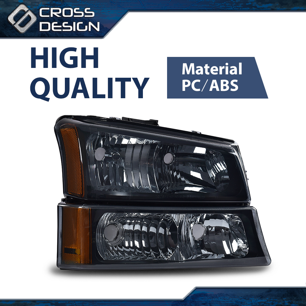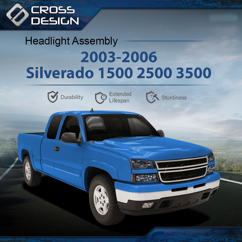 CROSSDESIGN Fit For 2003 2004 2005 2006 Chevy Silverado 1500 Avalanche Black Headlights Lamp