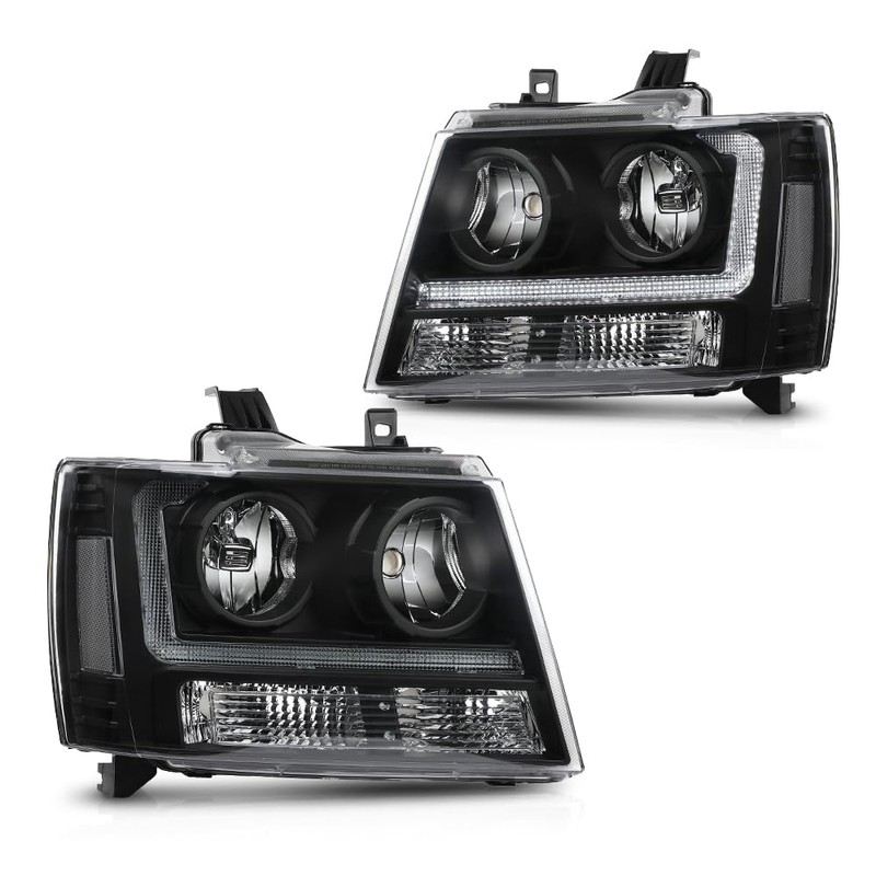 CROSSDESIGN LED Headlights Assembly Front Headlamp Left & Right Fit for Chevy Tahoe Suburban 1500 2007-2014, Fit for Chevy Avalanche Suburban 2500 2007-2013 Clear Lens Black Housing Clear Reflector