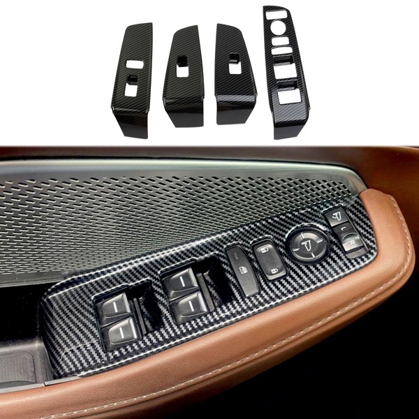 Crosselec Carbon Fiber Style Window Lift Switch Panel Cover Trim for 2022-2025 Acura MDX - Push Button, Manual Operation, Black