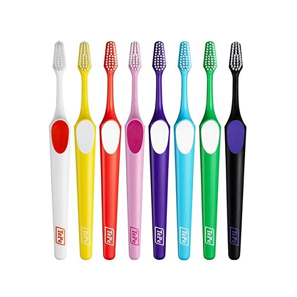 The long tapered filament gently brushes between the teeth, while the short filament gently brushes gums and teeth.