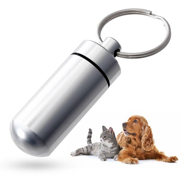 CROSSTALKER3 Cremation Key Holder for Pets, Memorial Keychain, Cremation Capsule, Silver