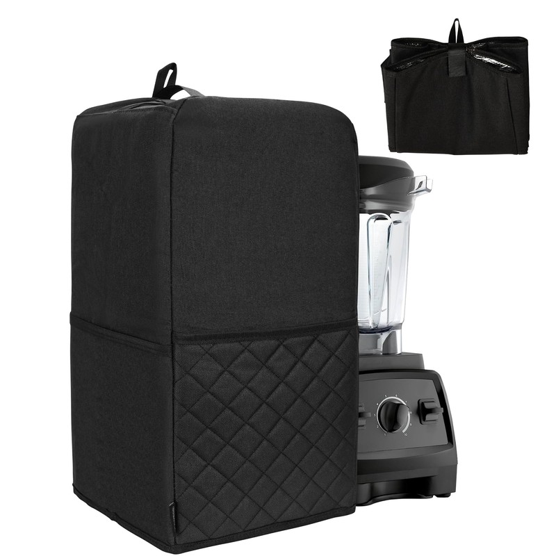CROTIRAD Hanging Blender Cover Compatible with Low-Profile 64 oz. Blender, Foldable Dust Cover with Accessory Pockets for Kitchen Blender, Black Quilted