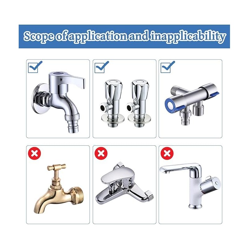 • Universal Compatibility for Multiple Settings This quarter-turn 1/2" tap valve is versatile for bathrooms, kitchens, hotels, dormitories, and washing machine faucets. Its universal design fits most mixer taps, enhancing water efficiency while providing reliable, long-lasting performance across various applications.