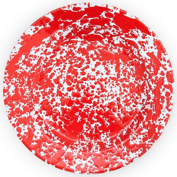 Crow Canyon Home Enamelware Dinner Plate, 10.25 inch, Red/White Splatter (Single)