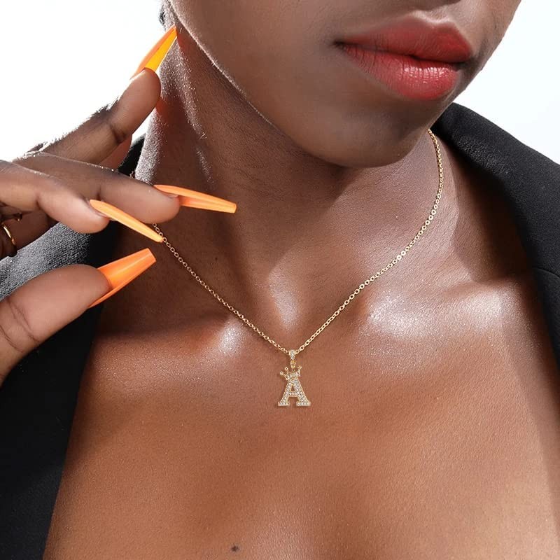 Crown A-Z Initial Necklace Gold Plated Sparkling Crystal Monogram Letters Pendant Necklaces for Women Alphabet Name Jewelry Gift (T)