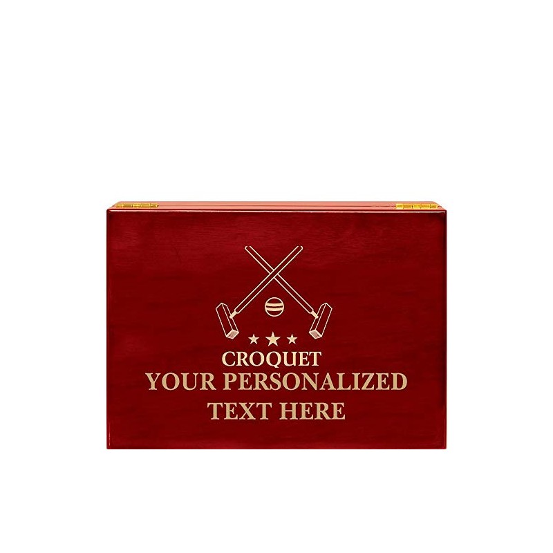 Crown Awards Croquet Rosewood Humidor Gift, Customize with Your Own Text Engraving