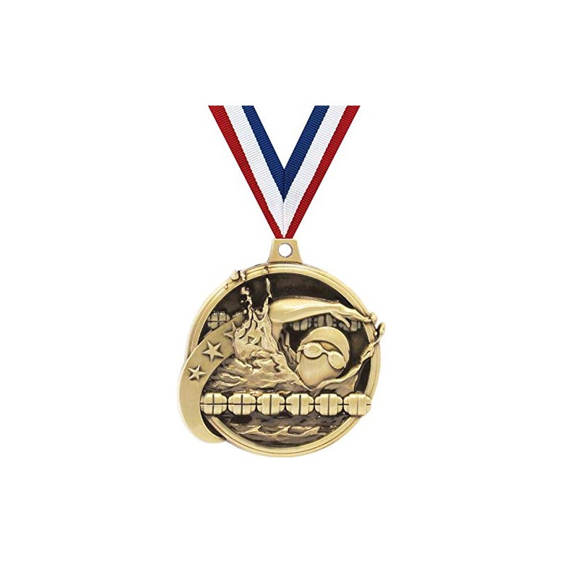 - KIDS SWIM MEDALS: Each Engraved Swim Medal Comes Attached With A Free Red, White And Blue Neck Ribbon Perfect For Showing Off Purposes.