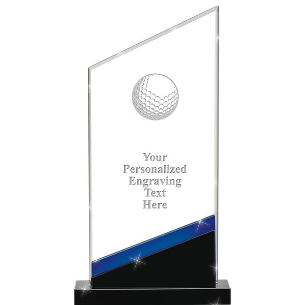 Crown Awards Customizable Crystal Award, 8" Engraved Golf Ball Sapphire Intensity Crystal Award