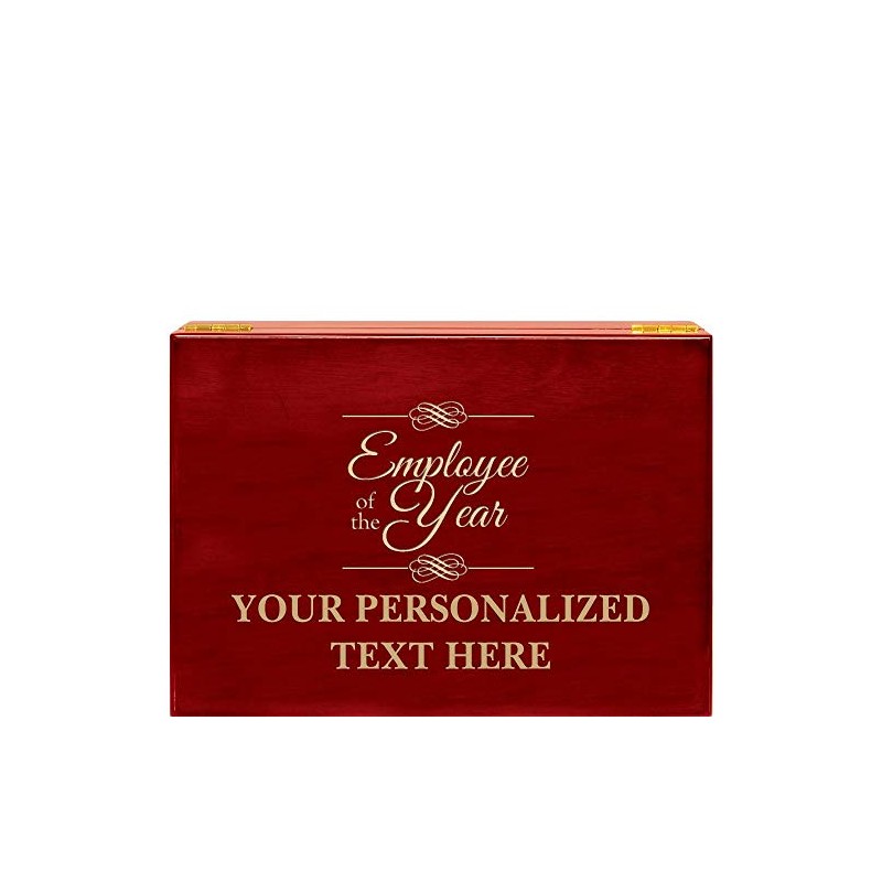 Crown Awards Employee of The Year Rosewood Humidor Gift, Customize with Your Own Text Engraving