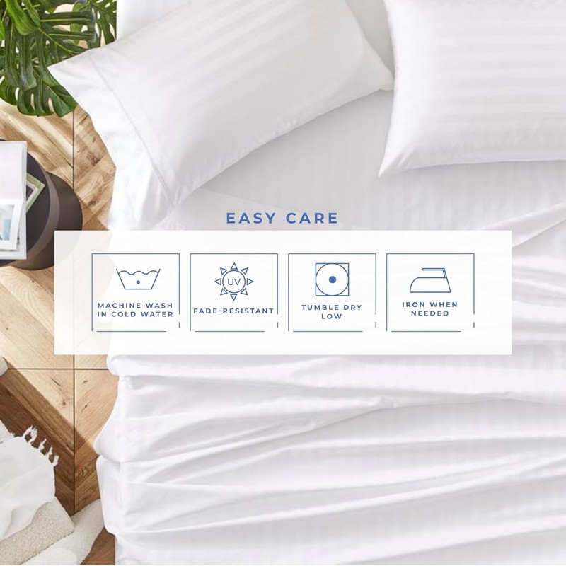 - Crown Collection 1000-TC Hypoallergenic Ultra Soft Design 100% Egyptian Cotton Striped Duvet Cover with Zipper Colser & 2pcs Pillow Case Set (Alaskan 120"x136"), White Striped)