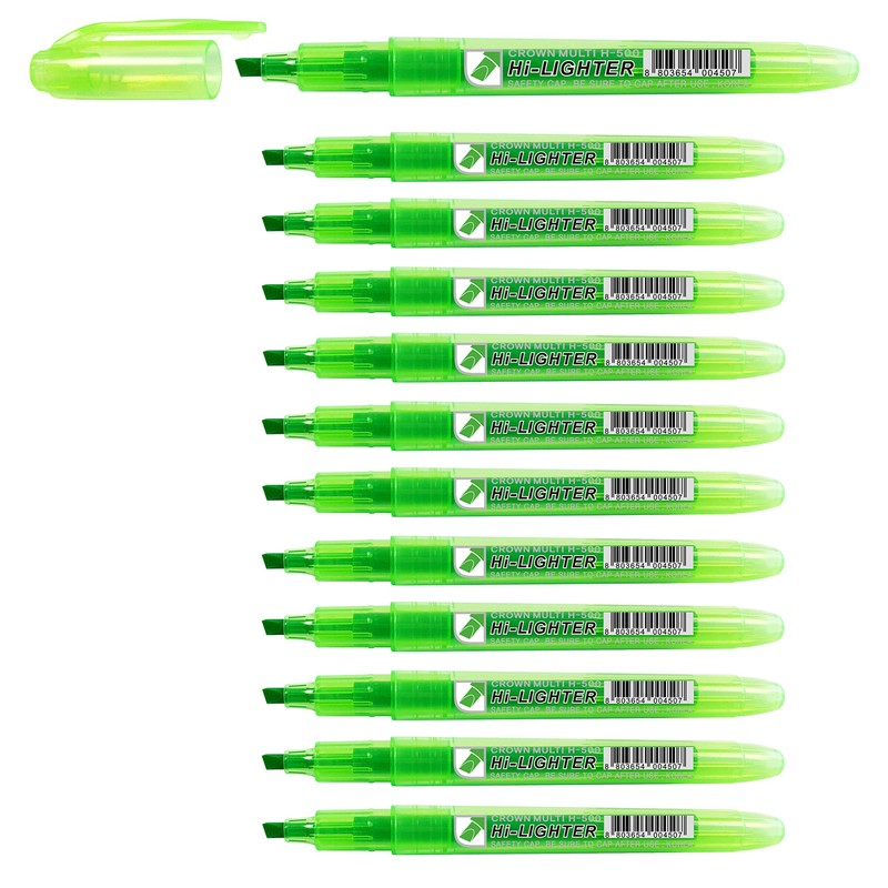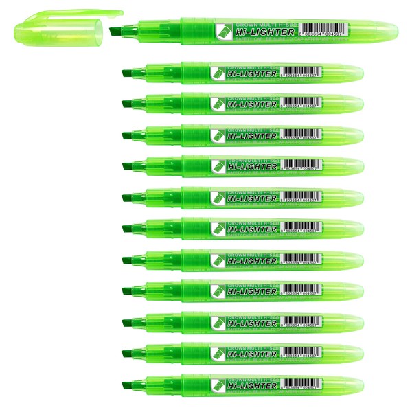 CROWN H-500 Highlighter Pens Chisel Tip Slim Highlighters - Pack Of 12 - With Bright Fluorescent Ink - Green