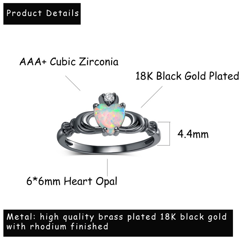 - Package Included-18K Black gold plated white fire opal heart promise claddagh ring band come with a nice jewelry pouch. If you want something for special occasions, the heart engagement ring will be definitely recommended for you.