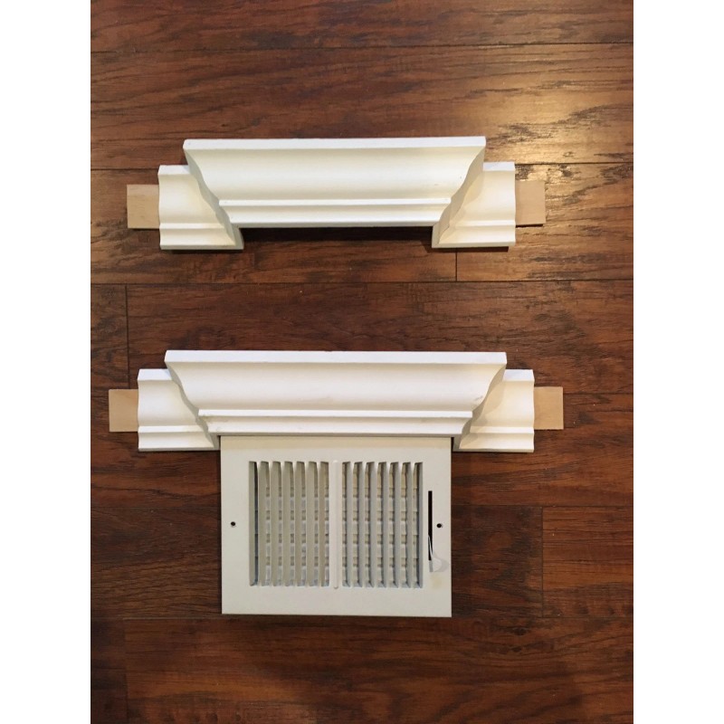 THIS IS A SPECIAL LISTING FEATURING 8" AND 10" AC VENT TRANSITIONS! IM AN ARTISAN PLINTH BLOCK FABRICATOR AND CAN TRANSITION ANY SIZE AND QUANTITY FOR YOUR AC VENTS! STAINABLE, PAINTABLE (WHICH I WILL PRIME), OR ALREADY PAINTED! THE PRICE IN THIS LISTING IS FOR MY 10" VENT HOOD AS SEEN IN THE LISTING PHOTO WHICH WILL TRANSITION THE MOST COMMON 3 5/8" CROWN MOLDING AND BRIDGE A 10" AC VENT. IVE ALSO INSTALLED GUIDE TABS AS WELL FOR THE EASE OF ADJOINING YOUR CROWN MOLDING. THE WINGS ON EACH SIDE OF THE HOOD TO WHICH THE TABS ARE ATTACHED ARE 3 1/2". TOTAL LENGTH OF THE 10" HOOD IS APPROXIMATELY 20" TO THE TAB ENDINGS. THIS IS MY NEWEST ITEM FOR WHICH IVE HAD MANY REQUESTS! IF YOU NEED ANY OTHER SPECIALTY ITEMS JUST MESSAGE ME AND I WILL CREATE THEM FOR YOU. THE PRICE IN THIS LISTING INCLUDES PRIMING AND PAINTING OF EACH HOOD. IVE PAINTED EACH WITH BENJAMIN MOORE SUPER WHITE SEMI GLOSS PAINT. I ALSO HAVE 12" VENT TRANSITIONS! IF YOU HAVE ANY OTHER QUESTIONS OR INQUIRIES PLEASE BY ALL MEANS MESSAGE ME.