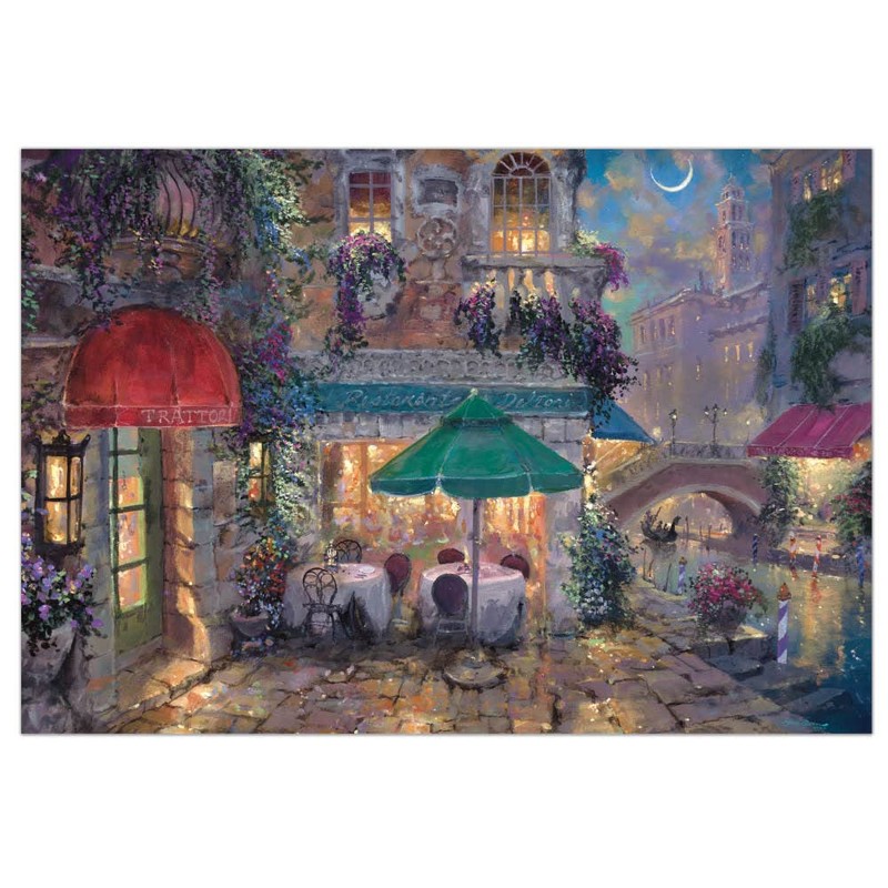 Crown Point Graphics Sera Romantica - 1000 Piece Jigsaw Puzzle - Artist James Coleman - Soft Touch Design - Romantic Café Puzzle with Canal, Balconies and Flowers at Night