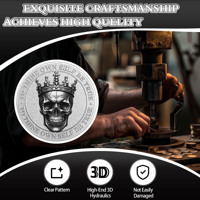 - Inspiring reverse design: The reverse of this skull sobriety coin comes from a quote by Shakespeare in Hamlet, ‘This above all: to thine own self be true, And it must follow, as the night the day, Thou canst not then be false to any man.’ This quote emphasises the importance of fidelity to self and moral fortitude, and for those in the process of sobriety, this fine AA coin is a source of spiritual support and guidance