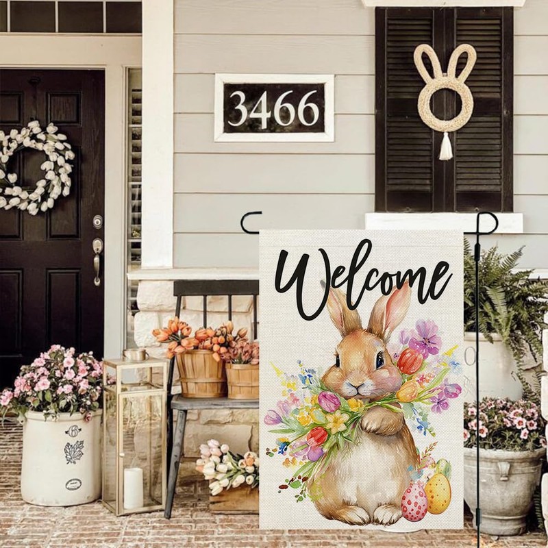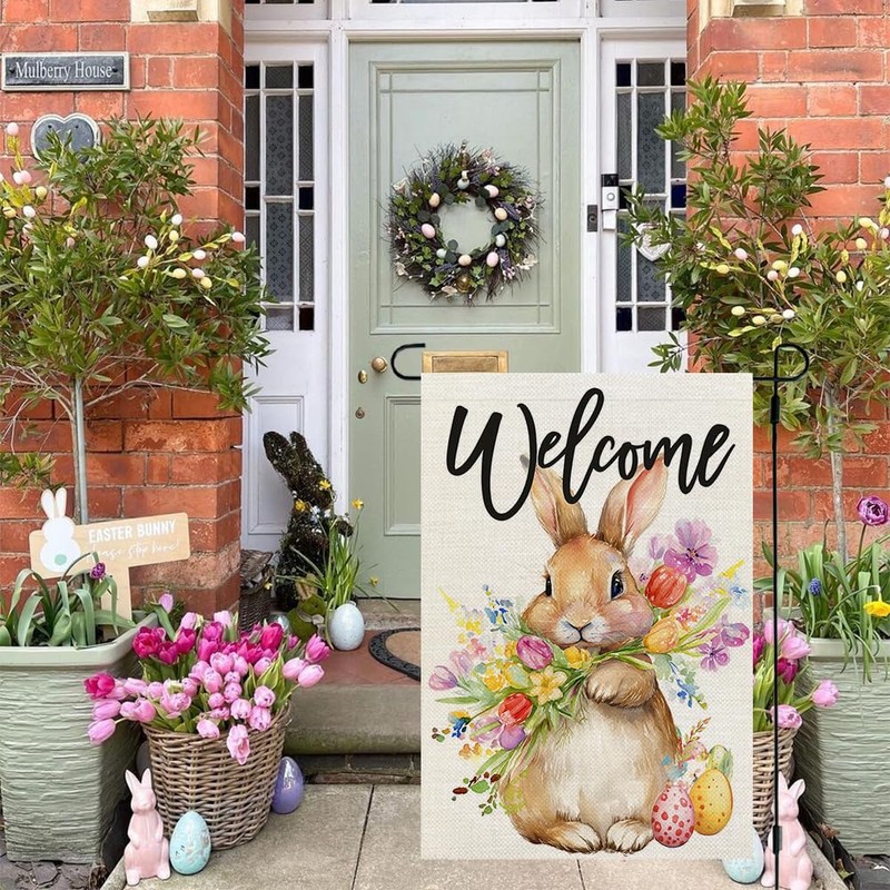 - Charming Easter Design: Our Easter garden flag features adorable bunny and spring flowers—perfect for adding a cheerful and festive touch to your garden, yard, or patio