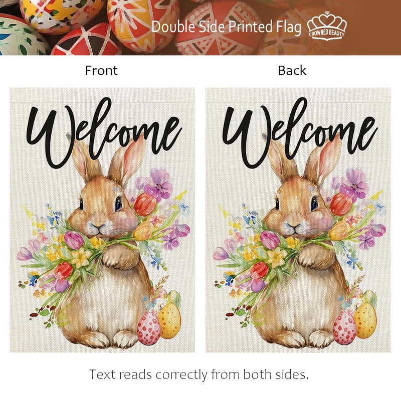 CROWNED BEAUTY Easter Bunny Garden Flag 12x18 Inch Double Sided for Outside Small Burlap Holiday Floral Welcome Yard Flag CF1802-12