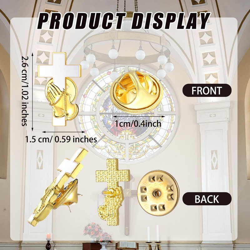 - Special Cross Praying Hands Design: these cross pins bulk feature a distinctive cross praying hands design, signifying faith, hope, and devotion, their distinctive design makes them not just another accessory, but a symbol of religious belief