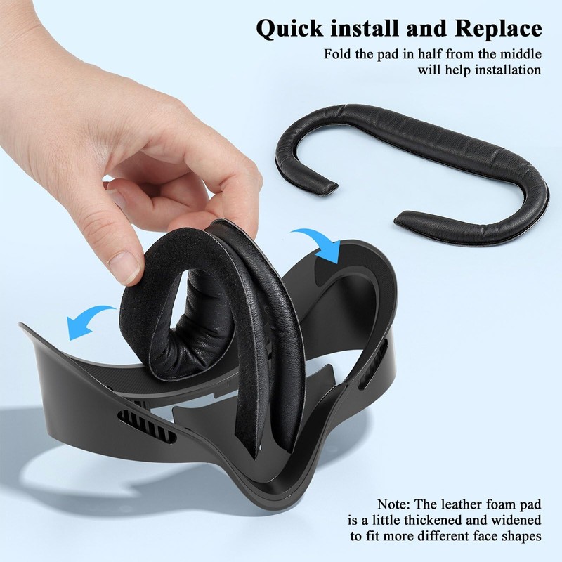 - Quick install and Replace:Fold the pad in half from the middle will help installation.Note: The leather foam padis a little thickened and widenedto fit more different face shapes.