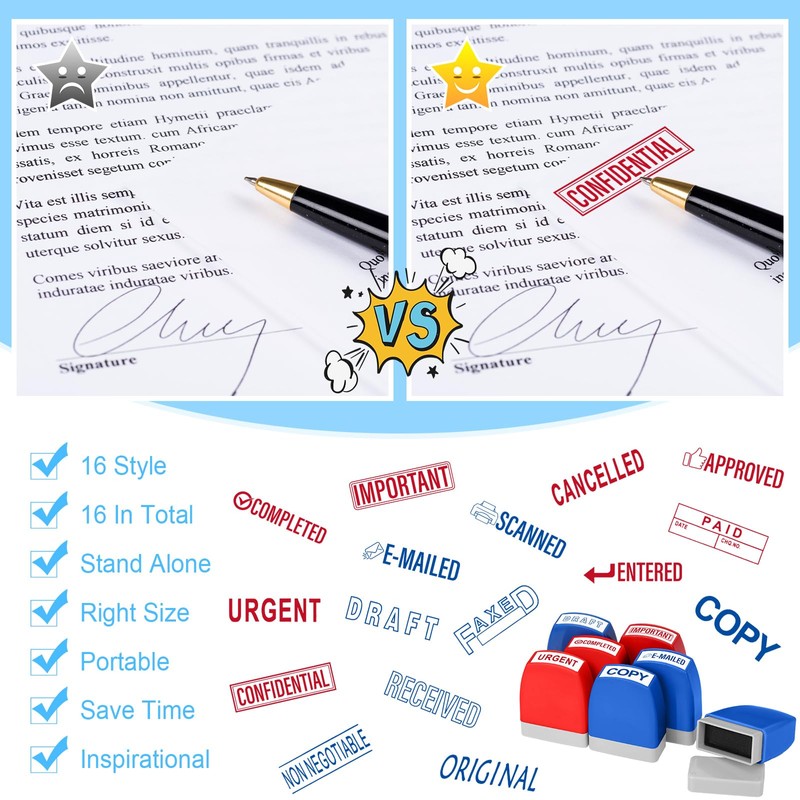 - Practical Design: this set of emailed stamp is the nice office accessory; Our set of stamps contains 16 basic phrases you need to do your job, so that you can quickly deal with most of the problems you encounter at work