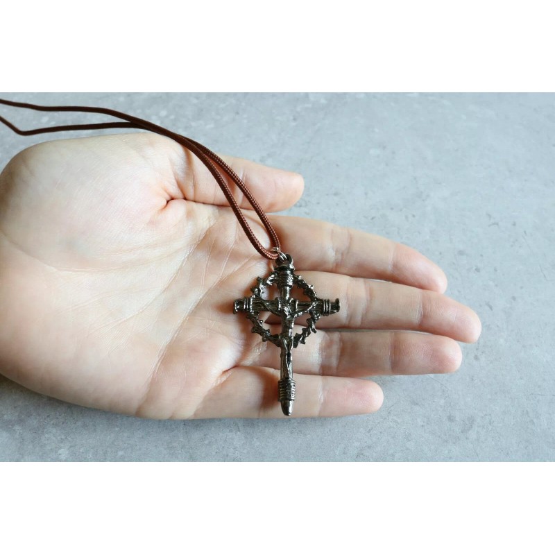 Crucifix Crown of Thorns Handmade Pendant Brown Paracord Necklace Catholic Mercy